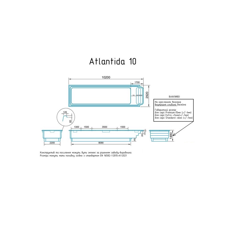 Багато хто мріє обзавестися на дачі справжнім басейном для плавання. Тепер це стало реальністю. Представляємо Вашій увазі нову композитну чашу, яка має досить великі габарити, тому в басейні одночасно може купатися багато людей. Її довжина дорівнює 10,3 м, ширина становить 2,9 м. Чаша оснащена зручним, ступінчастим спуском у воду, а так само має неглибоку зону, яка буде приносити радість найменшим членам сім’ї! У такого басейну можна влаштувати пляжну вечірку з водними розвагами. Басейн може бути встановлений як у приміщенні, так і на відкритому повітрі. Біля такого басейну з радістю проводитимуть час і діти, і дорослі, і підлітки зі своїми однолітками.
