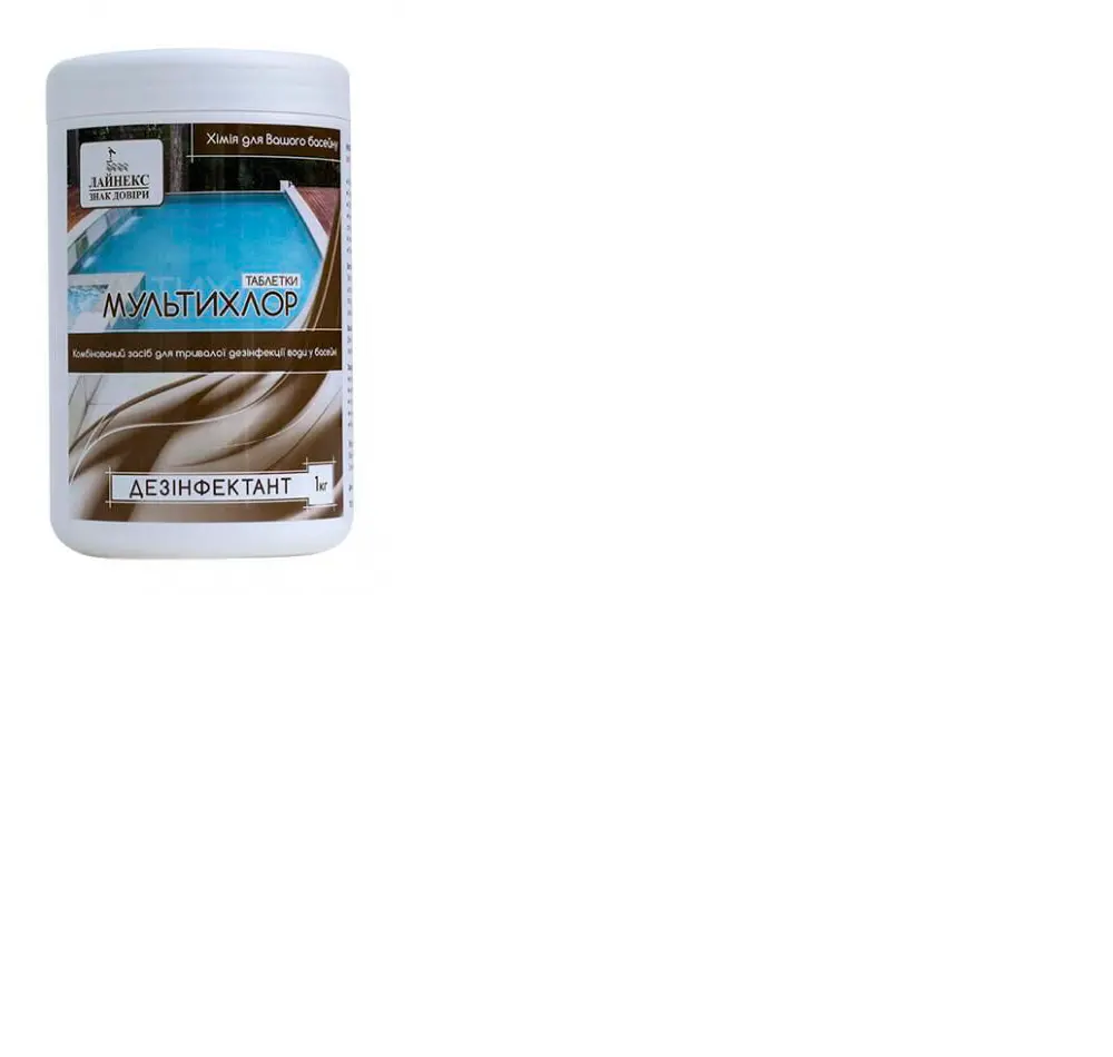 «Мультіхлор комбінований» – таблетки 200 г для комплексної обробки та тривалого знезараження води у басейні. Містить щонайменше 80% активного хлору. Має ефект «чотири в одному»: знезараження + боротьба з водоростями + зниження каламутності (коагуляція) + стабілізація рівня pH. Дуже повільно розчиняється підтримуючи постійний необхідний рівень хлору у воді басейну. Ефективно знищує бактерії, віруси, грибки та всі види водоростей. Забезпечує тривалу дезінфікуючу та альгіцидну дію. Руйнує та пов’язує органічні забруднення, викликають помутніння води. Уповільнює зростання та зниження рівня pH. Не містить вапна, не залишає осад при розчиненні. Формула препарату дозволяє використовувати його у воді будь-якої жорсткості.