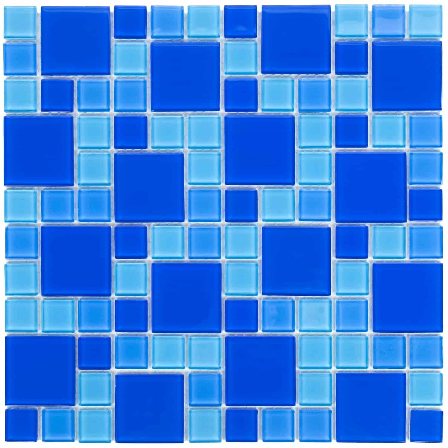 Комплект комбінованої напівпрозорої скляної мозаїки Aquaviva Cristall Dark Blue. Поєднання мозаїки двох різних розмірів 22 і 48 мм. У пачці 1.98 м². Ціна вказана за 1 м², мозаїка продається у квадратних метрах.