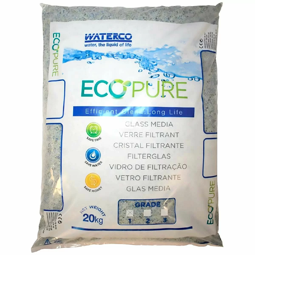 Екологічно чистий фільтрувальний матеріал Waterco EcoPure зі скла є найбільш ефективною заміною кварцового піску. Він забезпечує тонку фільтрацію води при збільшеному терміні служби. Скляну засипку можна використовувати в пісочних фільтрах усіх типів. Пісок Waterco EcoPure рекомендований для домашніх і комерційних басейнів, купелей, СПА і гарантує високу якість очищення води протягом усього терміну служби.