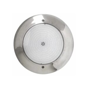 Габарити прожектора складають 100 x 12 мм. Корпус виготовлений з пластику білого кольору. Модель буде органічно виглядати в вашому басейні й забезпечить м’яке, естетичне освітлення. Корпус лампи залитий полімером. Клас водозахисту IP68. Комплектується затискною гайкою та кільцем.