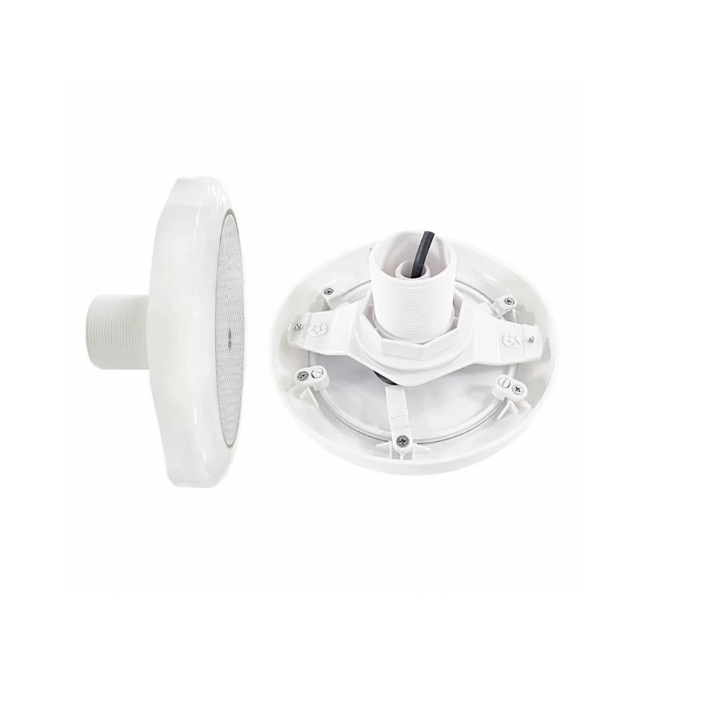 Габарити прожектора складають 230.3 х 47.5 мм. Корпус виготовлений із пластику білого кольору. Модель буде органічно виглядати в будь-якій водоймі й забезпечить м’яке, естетичне освітлення. Спеціальна кріпильна рамка дозволяє встановити ліхтар просто на поверхню чаші. Вбудовані захвати дозволять приховати зайвий кабель під корпусом лампи.