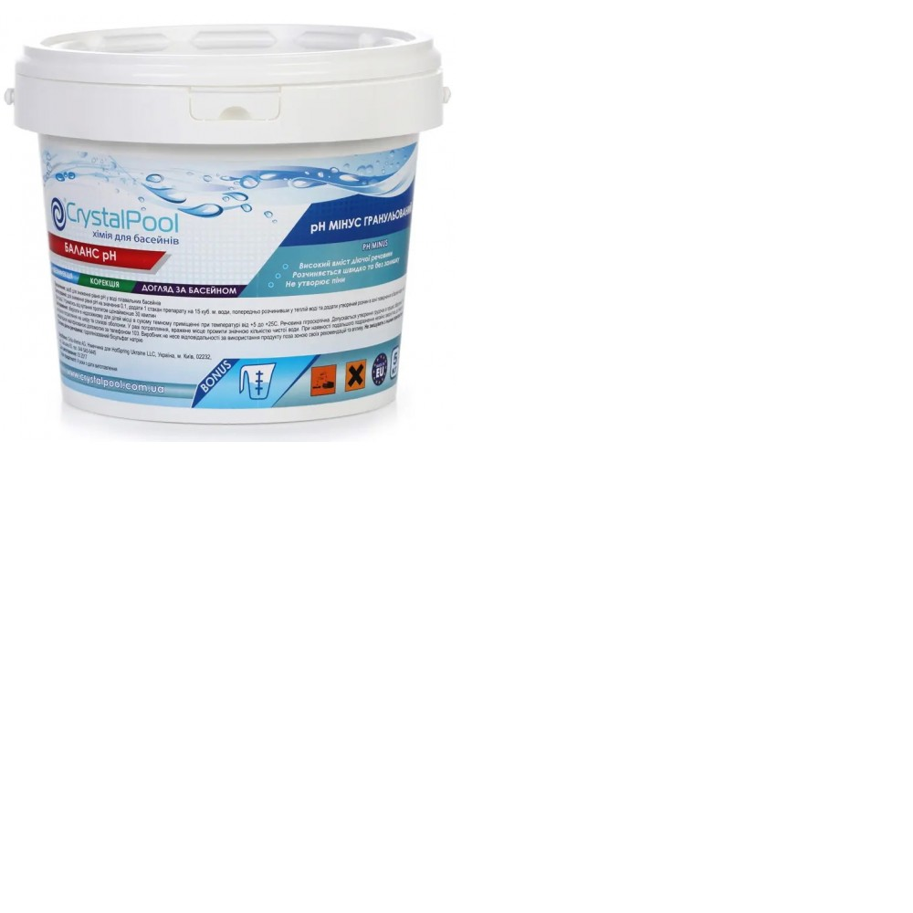 Як показала практика застосування хімії для басейнів, правильний показник рН води (7.0-7.4) є ключовою умовою для подальшого оброблення засобами для дезінфекції, і, як результат, кришталево чистої і приємної води. Засіб для зниження pH Crystal Pool pH Minus має концентрацію діючої речовини понад 98%, і, на відміну від аналогів, розчиняється швидко без утворення твердих залишків. У той час, як подібна хімія для басейнів подібного роду має сіруватий відтінок, фірмовий препарат від Crystal Pool виглядає від яскраво-жовтуватим, що підтверджує високу якість очищення сировини.