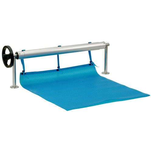 Комплектація: нержавіючі стійки, телескопічна штанга, набір стрічок та затискачів для кріплення солярного покриття, запобіжник від розмотування. Телескопічна штанга виготовлена з анодованого алюмінію. У ній є канавка по всій довжині руху кріплень солярного покриття.