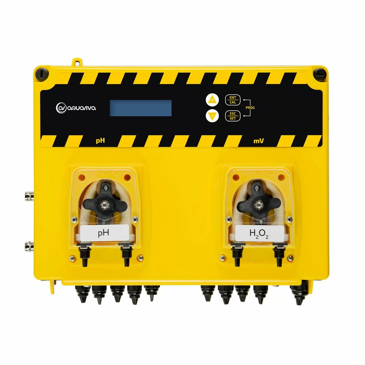 Система перистальтичних дозуючих насосів Aquaviva pH+H2O2 здійснює аналіз показників електродів Redox і pH. На основі цих показників насос автоматично дозує реагенти в потрібній пропорції. Таким чином забезпечується постійний контроль pH і Redox без участі людини. Пропорційна дотація виробляється в режимі Pro Band, постійна, – в режимі ON/OF.Висока якість води в басейні залишається стабільною навіть при зміні зовнішніх чинників: сонячна активність, дощ або збільшення кількості людей, які плавають.