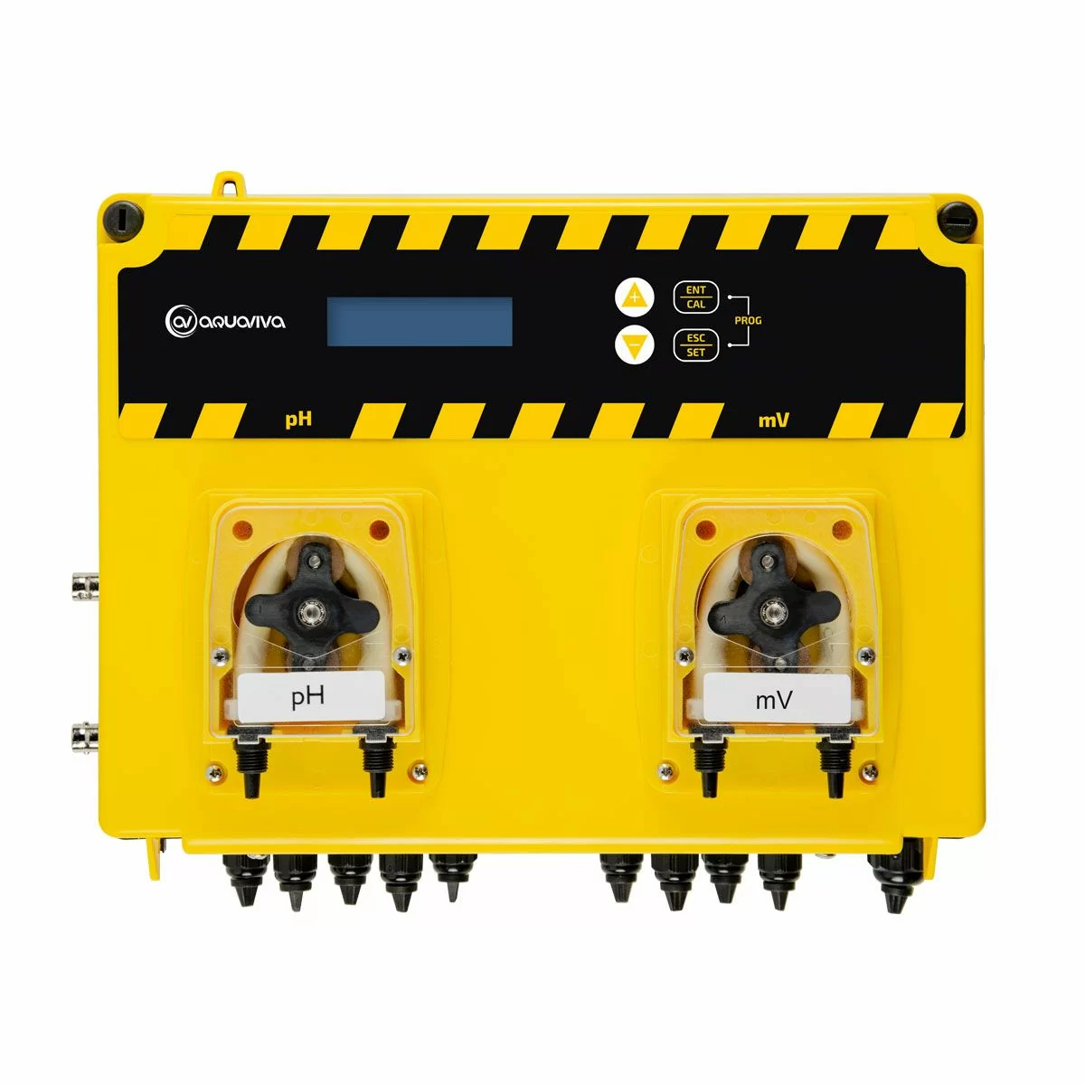 Система Aquaviva pH+Rx обладнана LCD-дисплеєм, за допомогою якого легко регулювати продуктивність через налаштування меню або використовувати систему автоматичної пропорційної дозації згідно з сигналом датчиків Redox і рН. Датчики та калібрувальні розчини постачаються в комплекті з системою насосів.