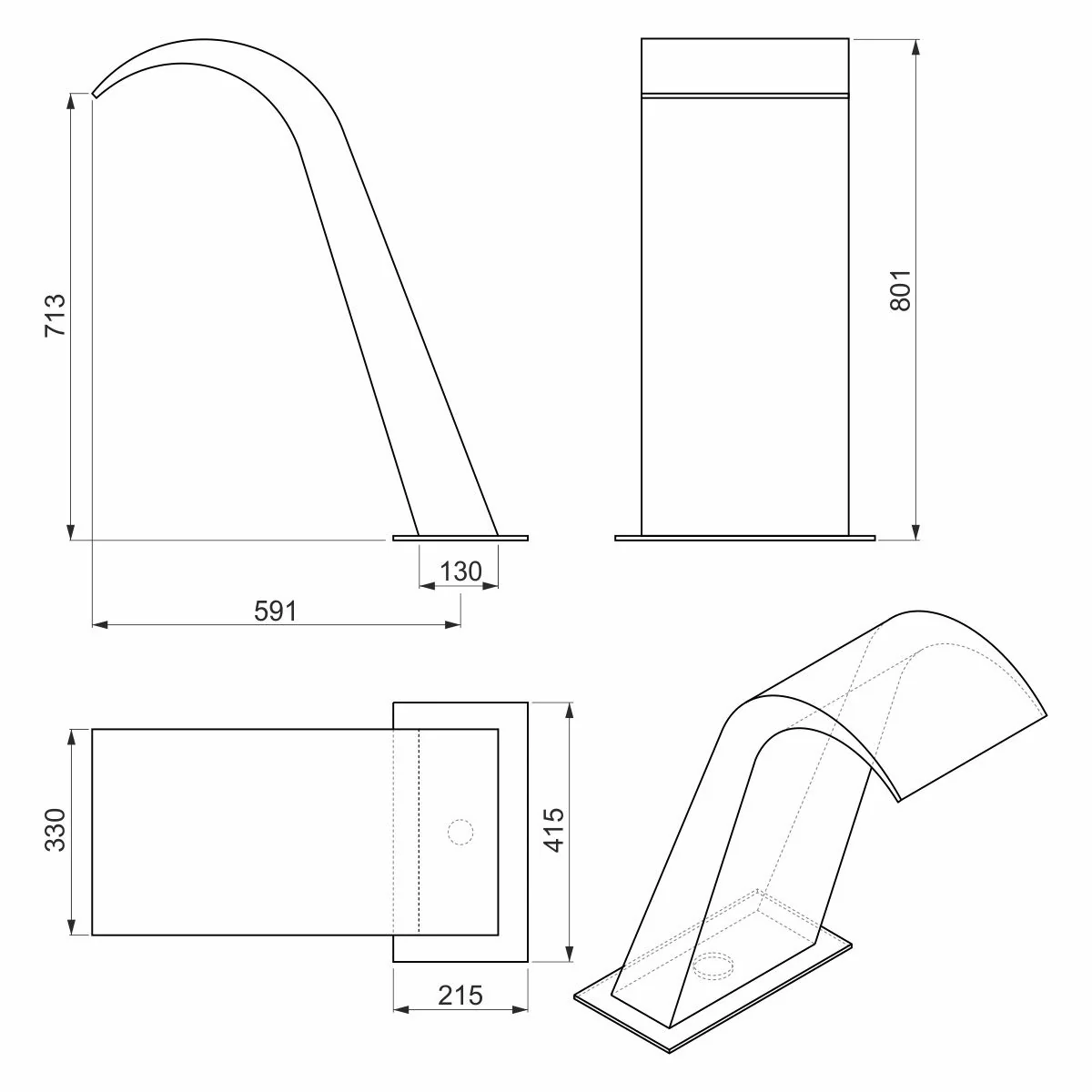Водоспад може мати висоту 800 мм та 1200 мм. Ширина сопла, в класичному виконанні – 330 мм
